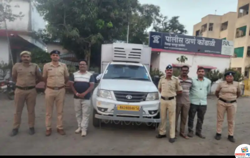 कोंढाळी :- रात्री कोंढाळी पोलीसांना गुप्त बातमीदारांकडुन खात्रीशीर माहीती मिळाली की, मरकसुर कलमुंडा रोडने अवैधरित्या जनावरांची वाहतुक केली जात आहे. मिळालेल्या माहीतीच्या आधारे पोलीसांनी मरकसुर कलमुंडा रोडने नाकाबंदी केली असता नाकाबंदी दरम्यान टाटा योद्धा गाडी क्र. एम एच २८ बी वी ४६१४ हे मिळुन आले. सदर वाहन चालकास थांबवण्याचा इशारा केला असता वाहन चालकाने पोलीसांचे वाहन पाहुन गाडी थांबवुन वाहनामधुन उडी मारून अंधाराचा फायदा घेवुन पळुन गेला. पंचासमक्ष वाहनाची तपासणी केली असता त्यामध्ये ११ गोवंश जनावरे असे मिळुन आले. नमुद जनावरांना कोणतीही चारापाण्याची सोय न करता, अंत्यत कमी जागेत दाटीवाटीने कोंबुन, शिंगाला व पायाला आखुड दोरखंडाने बांधुन, चारा पाण्याची व्यवस्था न करता वाहतुक करीत असल्याचे दिसुन आले. पोलीसांनी पंचासमक्ष घटनास्थळावरून एक वाहन टाटा योद्धा वाहन क्र. एम एच २८ वी वी ४६१४ किंमती ५,००,०००/- रूपये आणि ११ गोवंश जनावरे किंमती १,१२,०००/- रूपये असा एकुण ६,१२,०००/- रूपयांचा मुददेमाल जप्त केला आहे.