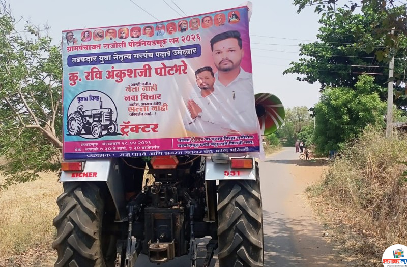 किशोर साहू, मौदा :- मौदा तालुक्यातील राजोली व नांदगाव या दोन ग्रामपंचायत मध्ये सरपंच पदाकरिता पोटनिवडणूक 28 एप्रिल ला होणार आहे. ग्रा पं राजोली येथे उपसरपंच तथा प्रभारी सरपंच योगेश महादुले (सिलेंडर), मागच्या सार्वत्रिक निवडणुकीत पराभूत झालेले ग्रामपंचायत सदस्याचे उमेदवार मधुकर श्रावणकर (छत्री), पोट निवडणुकीपूर्वीच भावी सरपंच म्हणून गावात चर्चेत असलेले युवा रवी पोटभरे (ट्रॅक्टर), ग्रा पं सदस्य रूपचंद आंबिलढूके( कपबशी) असे चार उमेदवार रिंगणात असून, चुनाव चिन्ह कपबशी चे उमेदवार वगळता सिलेंडर ,छत्री व ट्रॅक्टर चुनाव चिन्ह असलेले उमेदवार ट्रॅक्टर वर माइक लावून ऑडिओ क्लिप द्वारे निवडणुकीसारखेच प्रचार करताना वृत्तपत्र वाटप करीत असताना दिसत आहेत व या तीनच उमेदवारांनी गावात व राजोलीटोली येथे मोठ्या प्रमाणात मोठमोठे बॅनर लावून निवडणुकीत चुरस निर्माण केल्याचे दिसत आहेत.